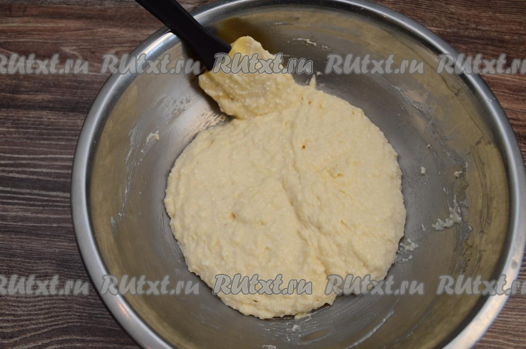 Как только консистенция творожного теста для запеканки станет напоминать густую сметану, больше муку не добавляйте.