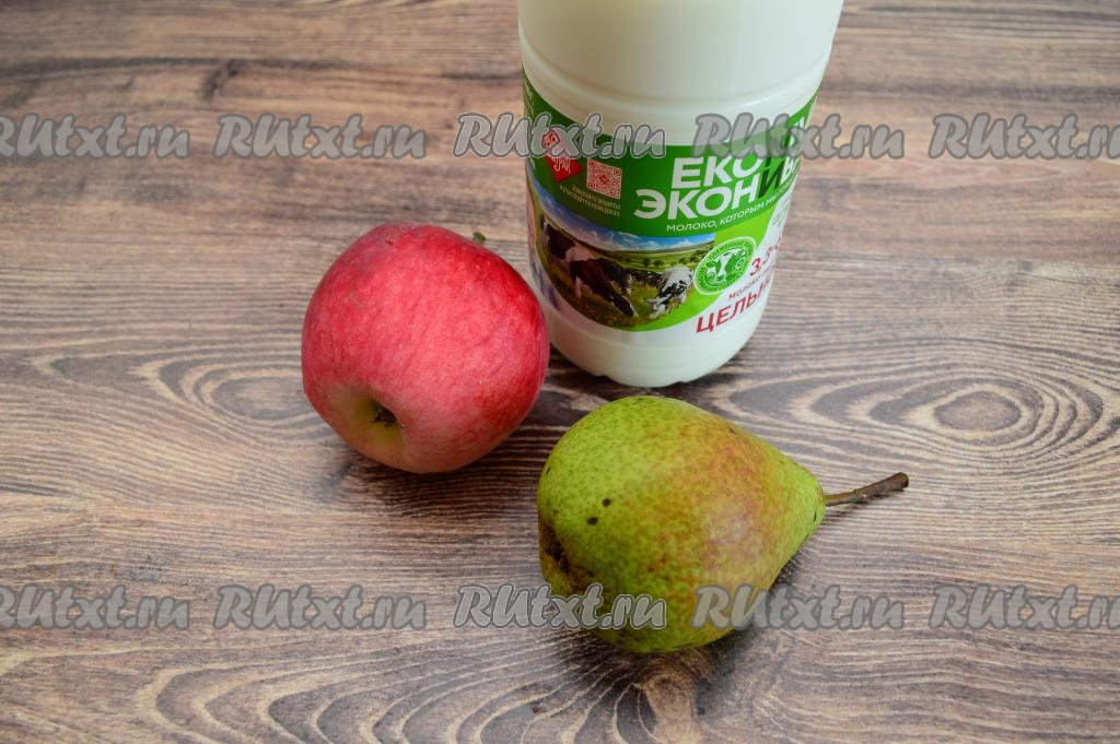 Яблоко и грушу выбирайте спелые, сладкие, тогда сахар можно в смузи не добавлять. Вымыть яблоко и грушу.