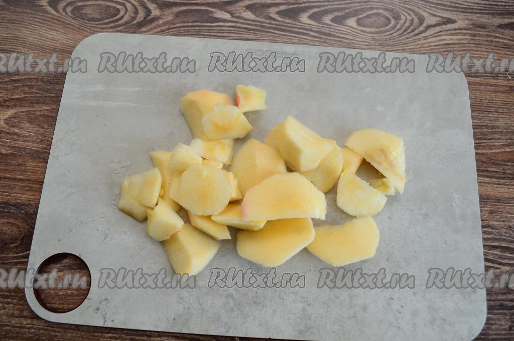Яблоко очистить от кожуры и нарезать на небольшие кусочки.