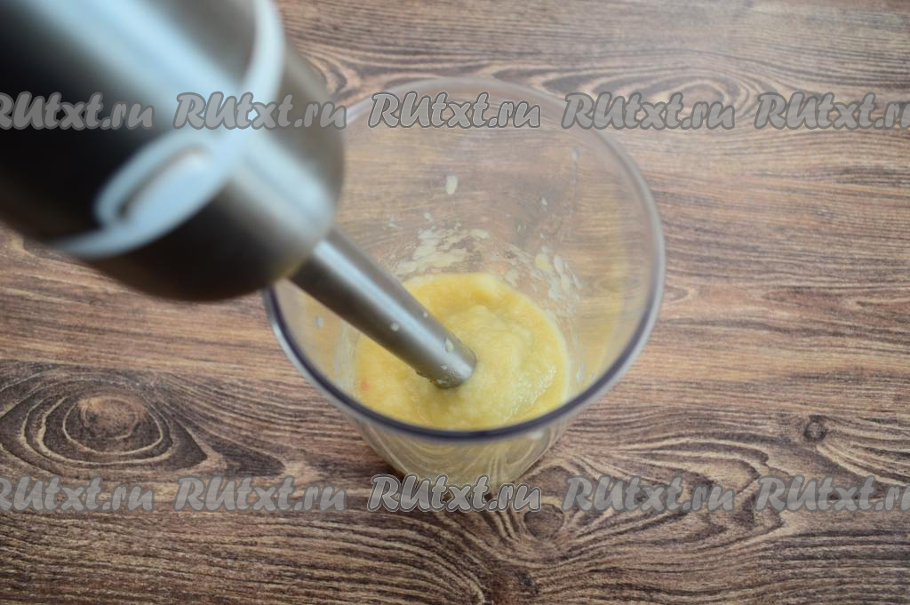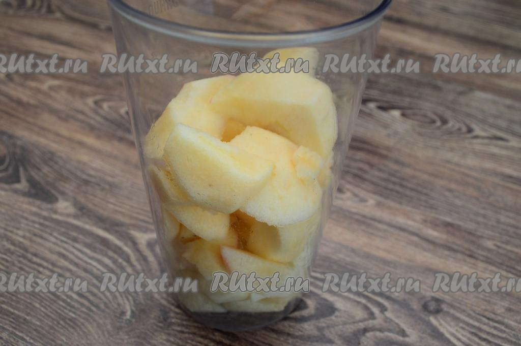 Погружным блендером пробить кусочки яблок и груш до получения однородного пюре (пробивать нужно, как минимум, 1 минуту).