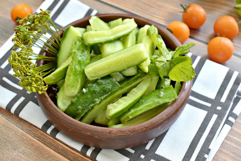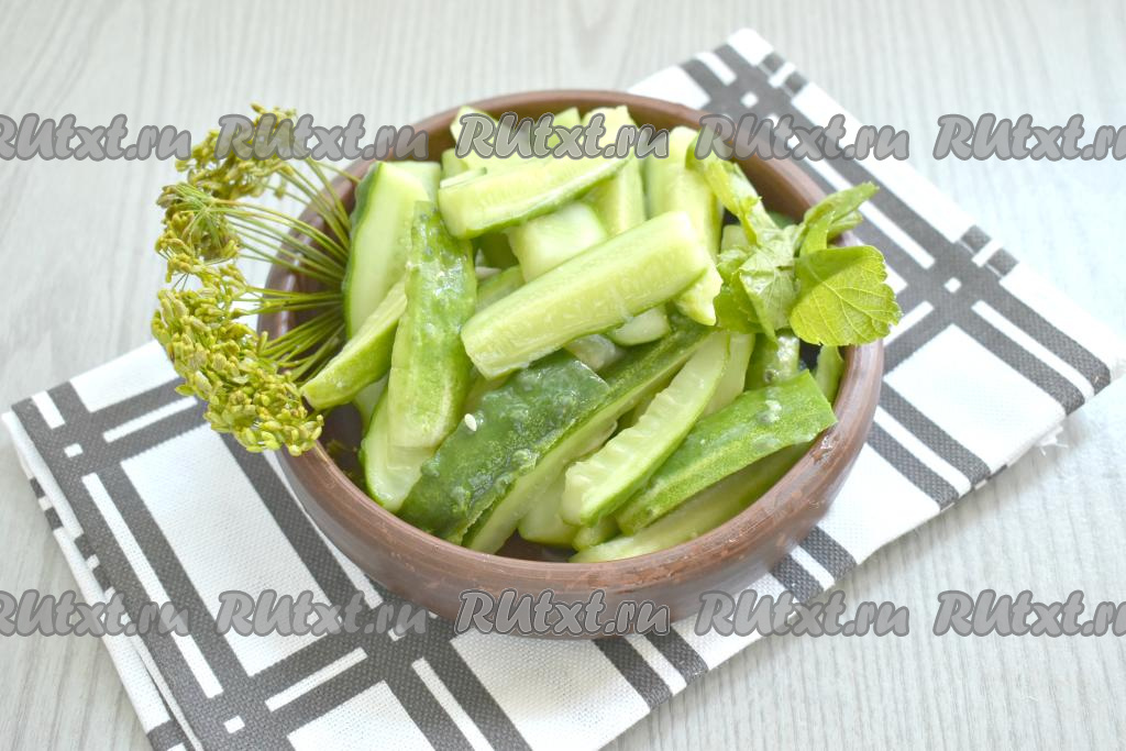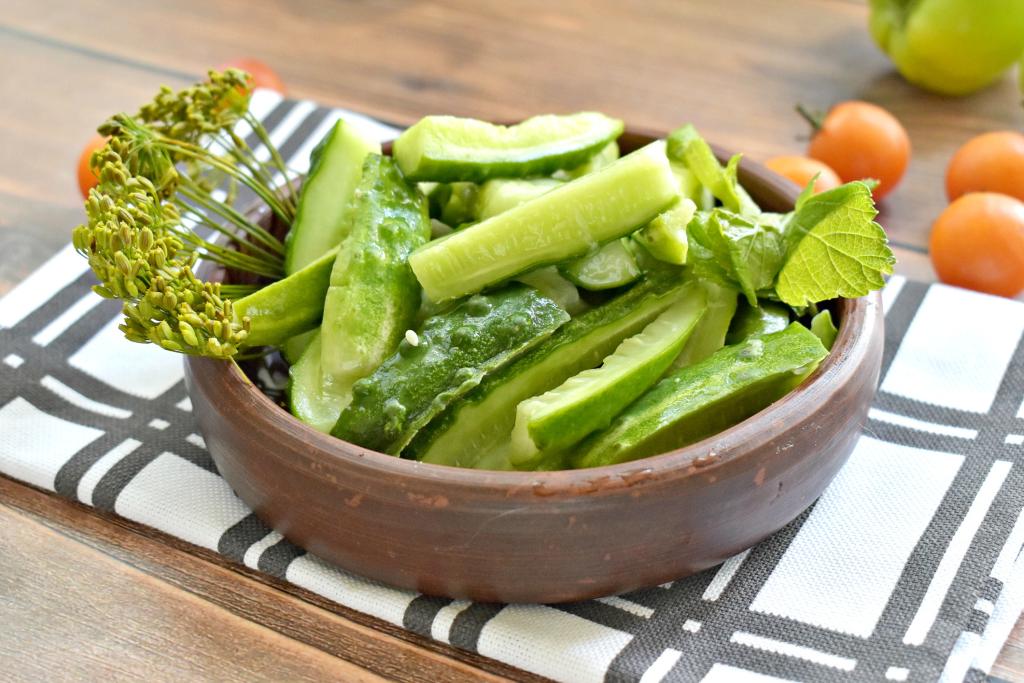 Огурцы, маринованные за сутки, получаются хрустящими, ароматными, с пикантной ноткой, их можно подать в качестве дополнения к отварному картофелю, запечённому мясу и ко многим другим блюдам.