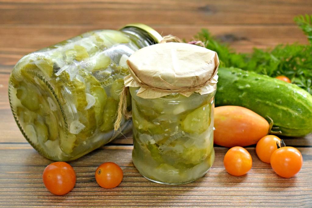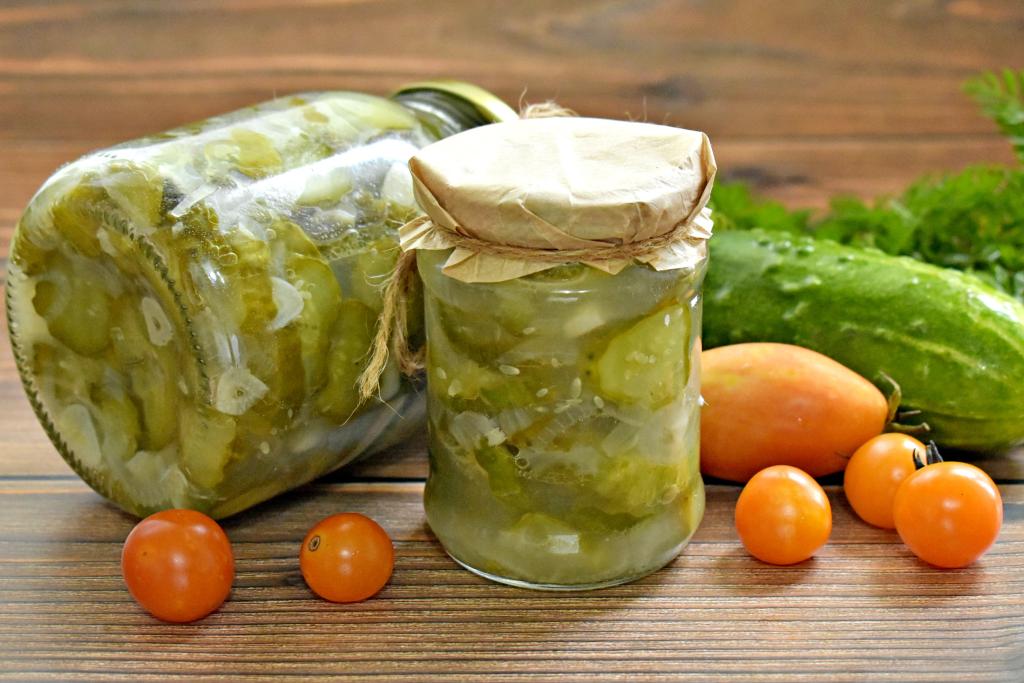 Переворачиваем банки с салатом дном вверх, укутываем со всех сторон тёплым полотенцем (или пледом), а после полного остывания отправляем на хранение в кладовую или подвал.