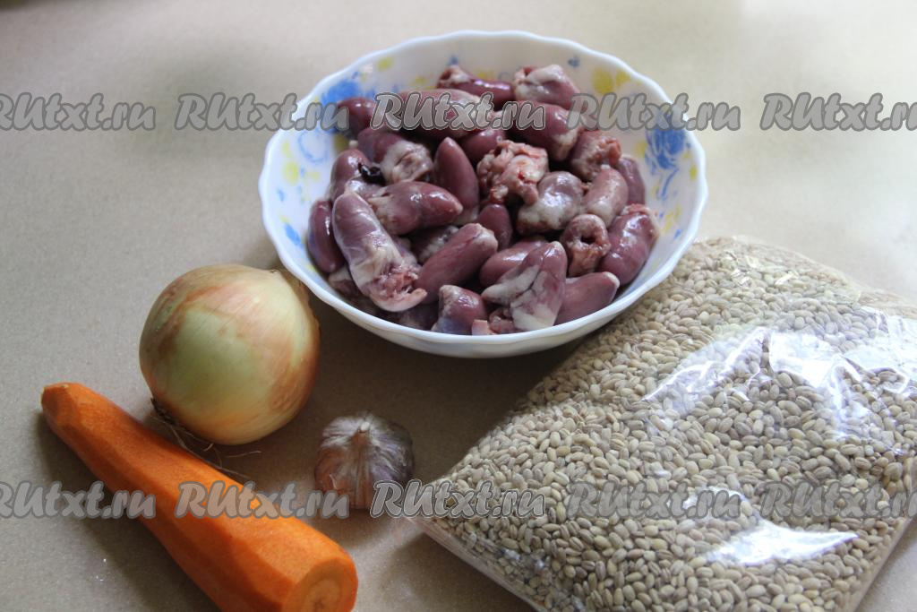 Подготовить продукты. Лук и морковь почистить. Перловую крупу хорошо промыть под проточной водой, дать стечь лишней воде.