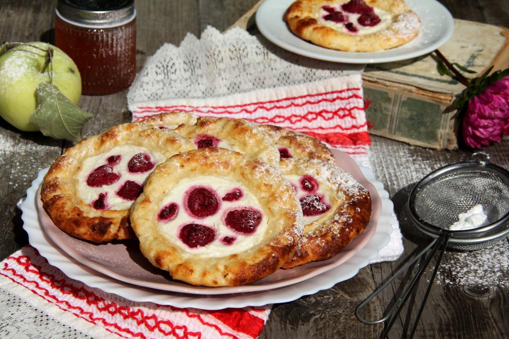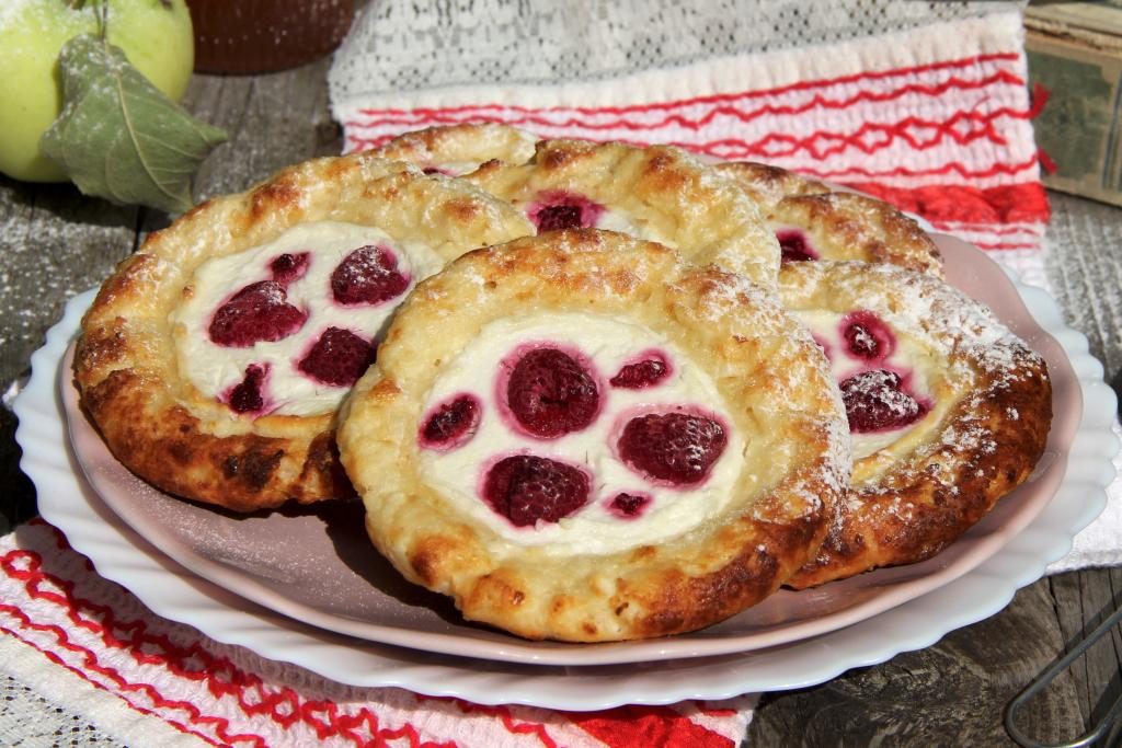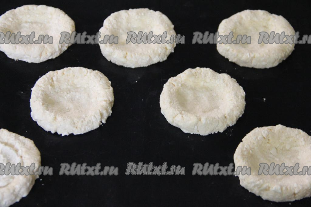Равномерно разложить получившуюся творожную начинку в углубление каждой ватрушки.