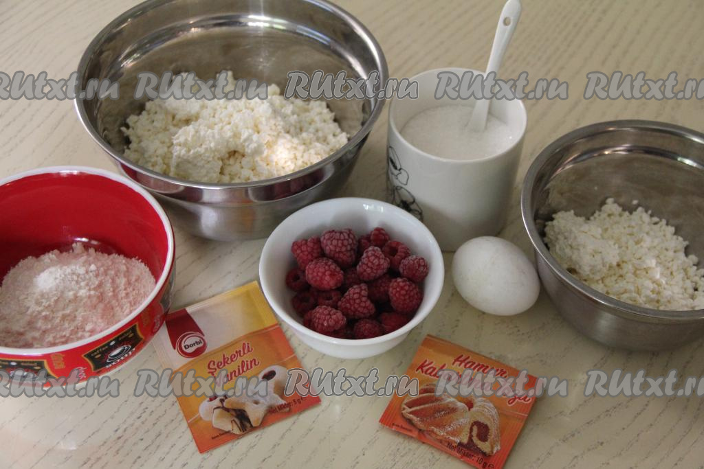 Подготовить продукты. Ягоды можно взять как замороженные, так и свежие. Я использовала малину, но подойдёт и смородина, вишня без косточек, черника, клубника. Свежие ягоды нужно будет промыть и обсушить. Замороженные ягоды, если на них нет большого количества льда, можно не размораживать.