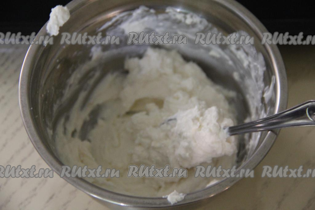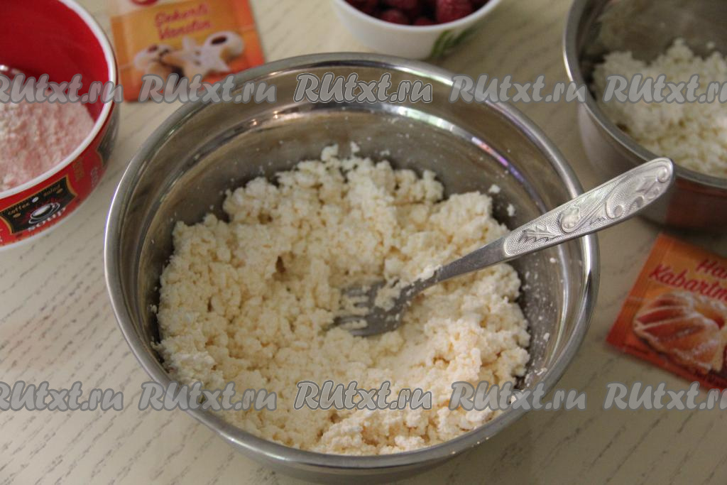 Перетереть творожную массу вилкой до однородности.