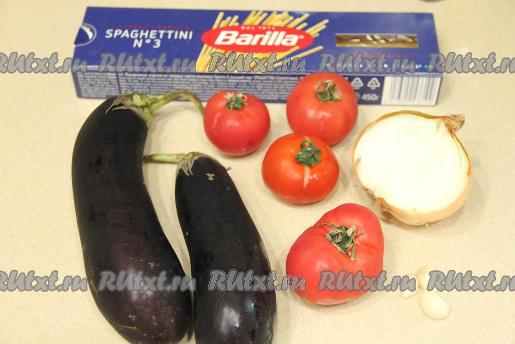Для приготовления спагетти с баклажанами и помидорами потребуется: