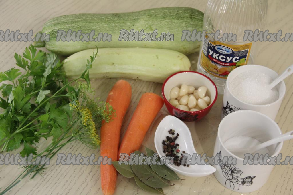 Подготовить продукты. Кабачки для этой заготовки нужно брать молодые, то есть с мелкими семечками и тонкой кожурой. Кабачки вымыть (кожуру я срезать не стала), обрезать кончики с двух сторон. Петрушку и зонтики укропа вымыть. Морковь и чеснок почистить.