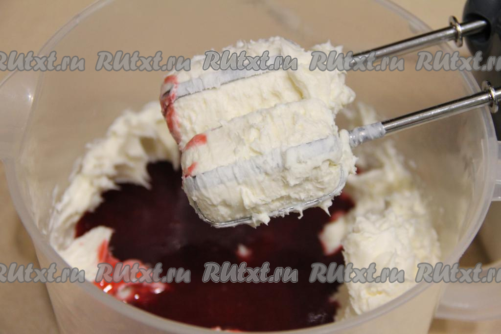 Перемешать творожно-ягодную массу миксером до однородного состояния.