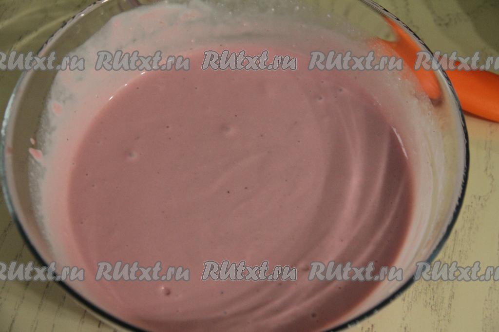 После того как кристаллики желатина растворятся, влить молочно-желатиновую смесь в творожно-ягодную массу, перемешать миксером до однородности.