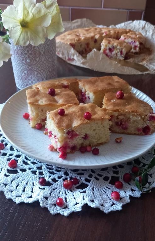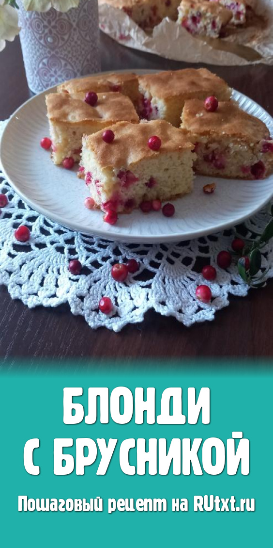 Блонди - это аналог брауни, только с белым шоколадом. Предлагаю удачный базовый рецепт этой вкуснейшей выпечки. В этот раз я пекла этот пирог с брусникой, но вместо неё подойдёт любая кисленькая ягода, например, смородина или мелкий крыжовник. Рецепт блонди был найден в Интернете и немного изменён мною.
