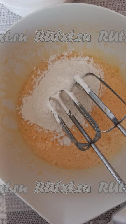 Муку просеять вместе с разрыхлителем.