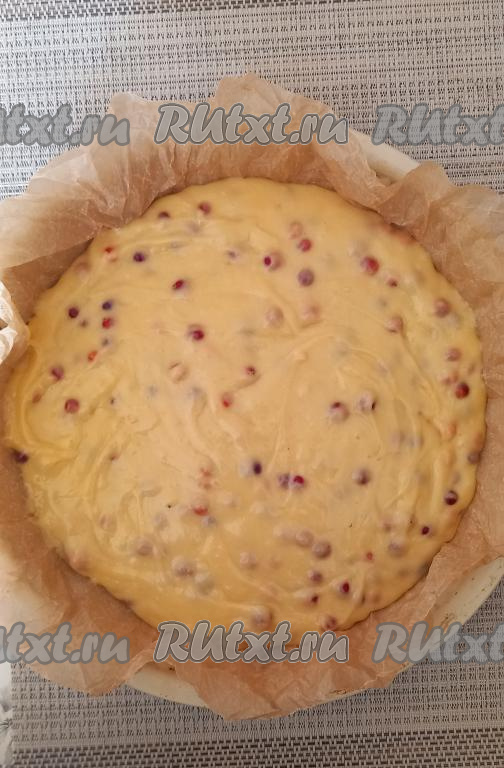 Тесто выложить в форму для выпечки, предварительно застеленную пергаментом.