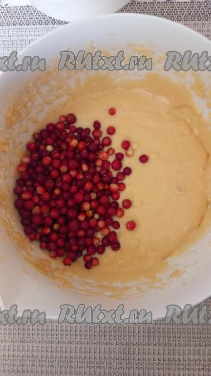 Всыпать в тесто ягоды и снова перемешать.