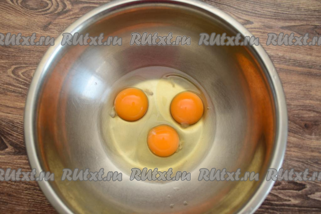 В отдельную миску вбить сырые яйца.