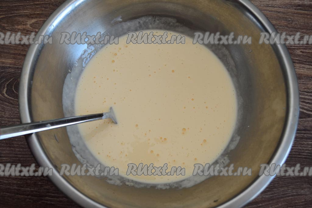 Перемешать вилкой сметану с яйцами до однородности.
