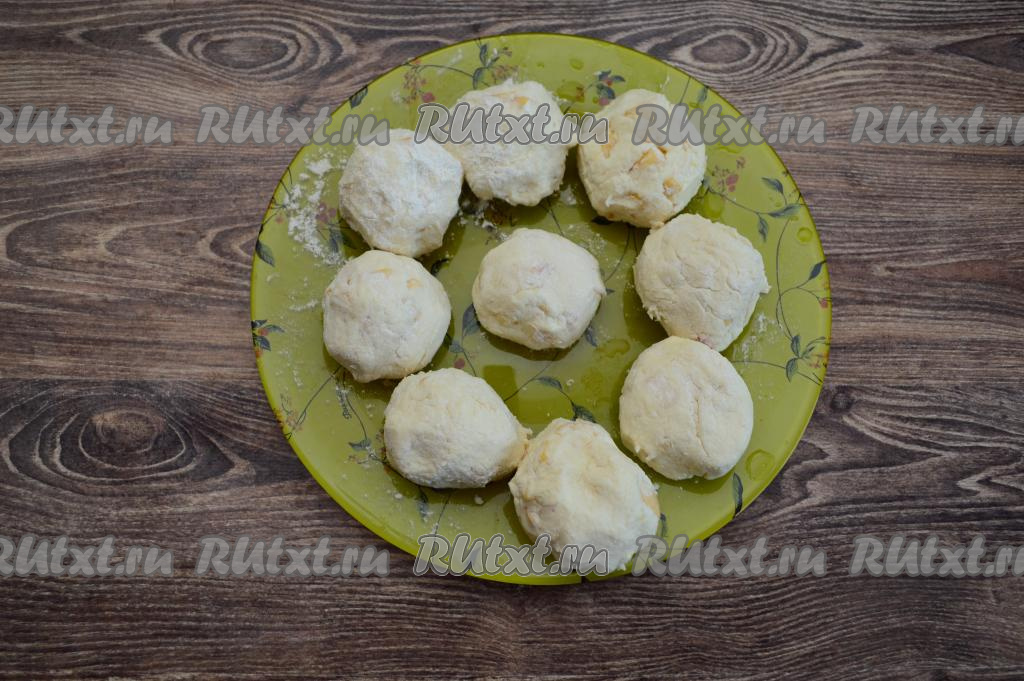 Аналогично сформировать все сырники с нектаринами и обвалять их в муке. Не забывайте каждый раз смачивать руки водой, тогда тесто не будет сильно липнуть к рукам, а значит формировать сырники будет несложно.