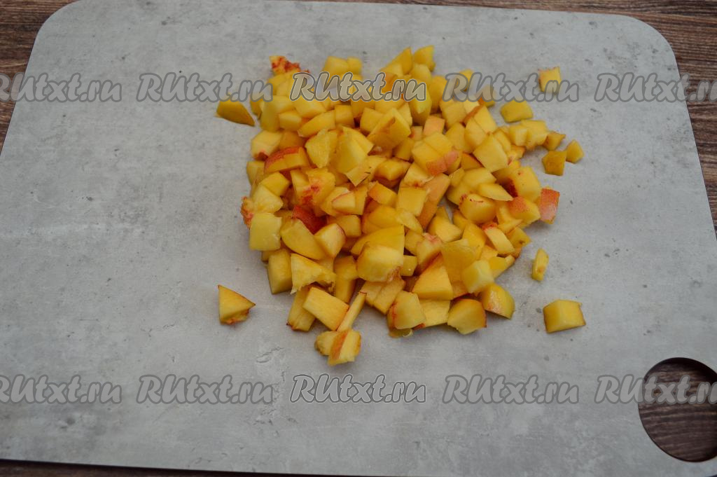 Нектарин вымыть, удалить косточку. Нарезать нектарин на небольшие кусочки. Чем меньше будет размер кусочков нектарина - тем лучше.