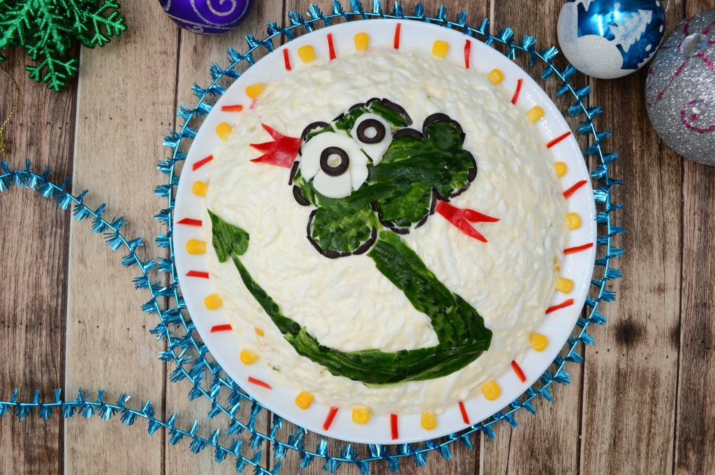 Не успеем оглянуться в повседневной суете, как наступит время праздновать Новый год. А значит желательно заранее задуматься о блюдах для новогоднего стола. В моей семье очень любят сочный, яркий, вкусный салат, приготовленный из крабовых палочек, свежего огурца, кукурузы и яиц. Поэтому и решила, что именно его буду украшать в новогодней тематике. Наступающий 2025 год по восточному гороскопу будет годом зелёной деревянной Змеи. Поэтому решила нанести на новогодний крабовый салат симпатичную змейку, которая точно никого не напугает своим внешним видом, а создаст хорошее настроение. Уверена, крабовый салат, приготовленный и оформленный по этому рецепту, понравится и вам, и вашим близким, и хозяйке наступающего года!
