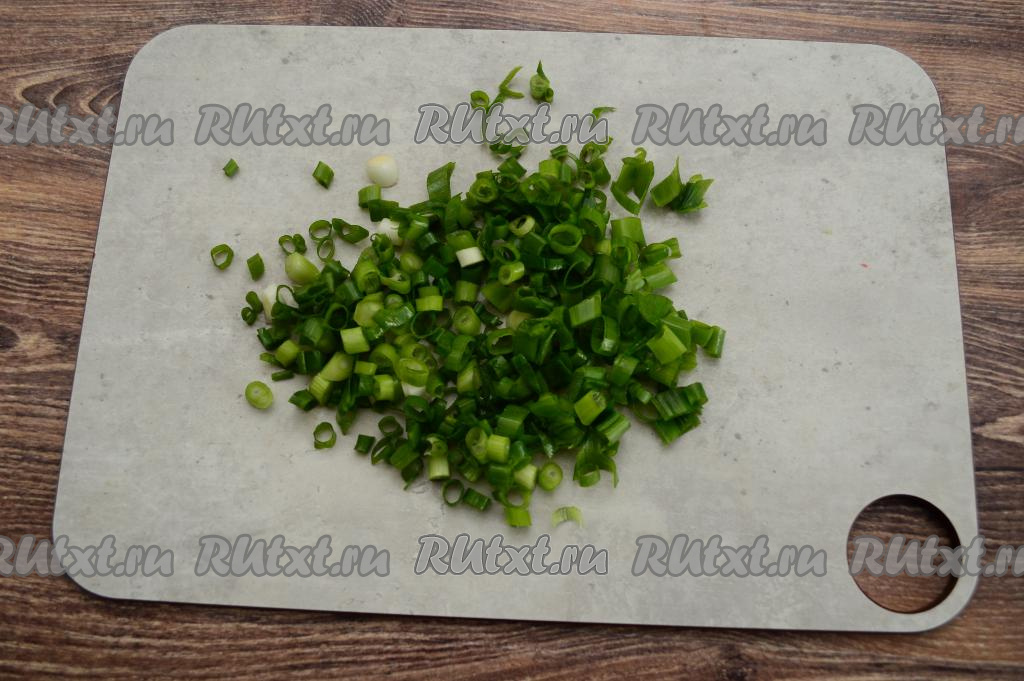 Зелёный лук вымыть, обсушить, нарезать достаточно мелко.