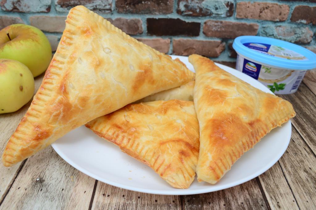 Я очень люблю выпечку из покупного слоёного теста. Ведь, не тратя много времени на кухне, можно достаточно быстро подать к столу разнообразные слойки. В этот раз решила испечь слойки с начинкой из творожного сыра и яблок. Вкус этой выпечки очень понравился моей семье. Сочная, нежная творожно-яблочная начинка идеально сочетается с воздушным, приятно похрустывающим слоёным тестом. Съедаются такие слойки за один присест, так что сразу пеките двойную порцию!