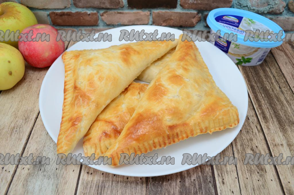 Выпекать слойки с творожным сыром и яблоком при температуре 200 градусов минут 20-25 (до подрумянивания слоёного теста).