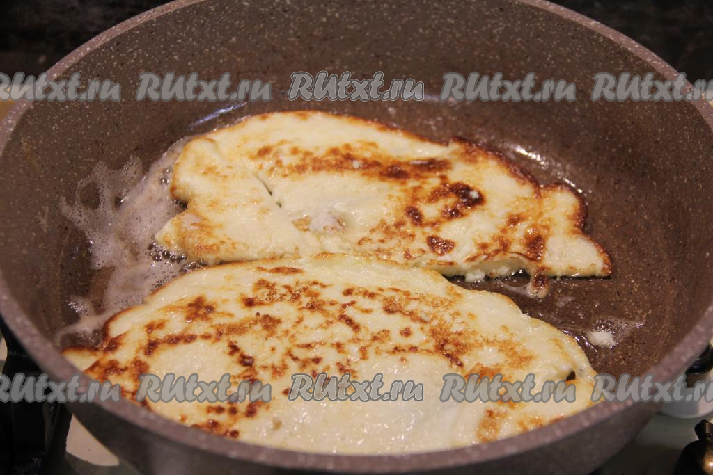 Остывший омлет выложить на куриное мясо.