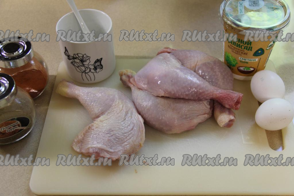 Подготовить продукты. Для формирования рулета можно взять куриное филе или окорочка. Я взяла окорочка.