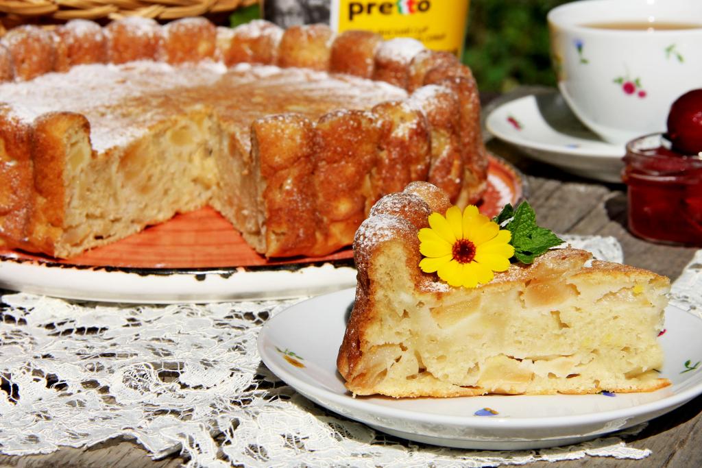 Перед подачей можно присыпать пирог сахарной пудрой.