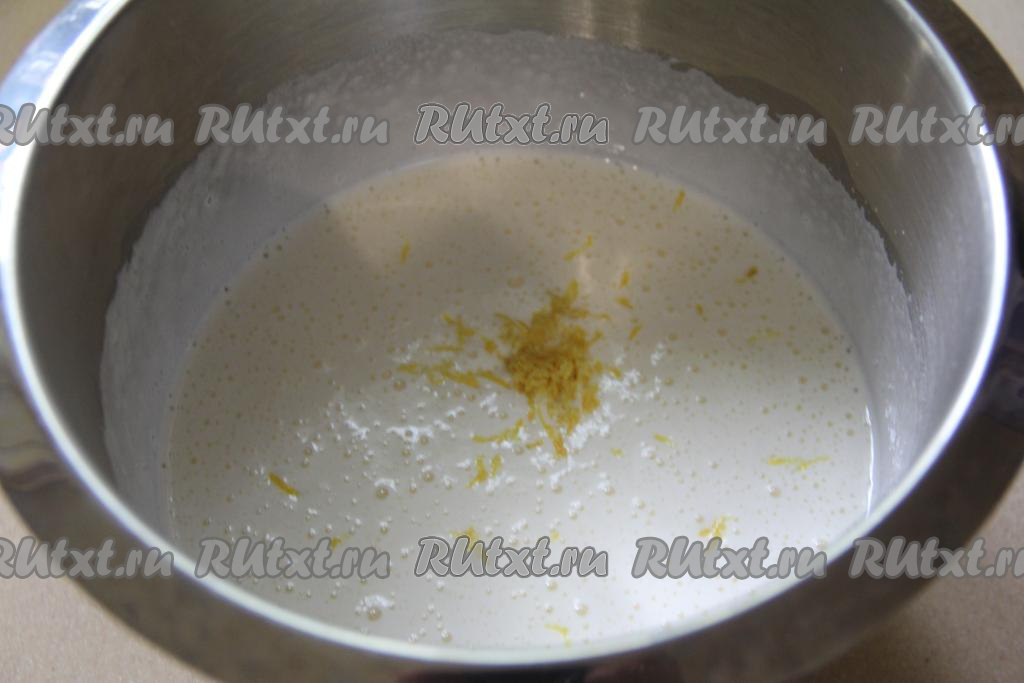 Подготовить продукты. Лимон тщательно вымыть. Аккуратно снять с лимона 0,5 чайной ложки цедры (снимая жёлтую цедру лимона, старайтесь не затрагивать, находящийся под цедрой белый слой).