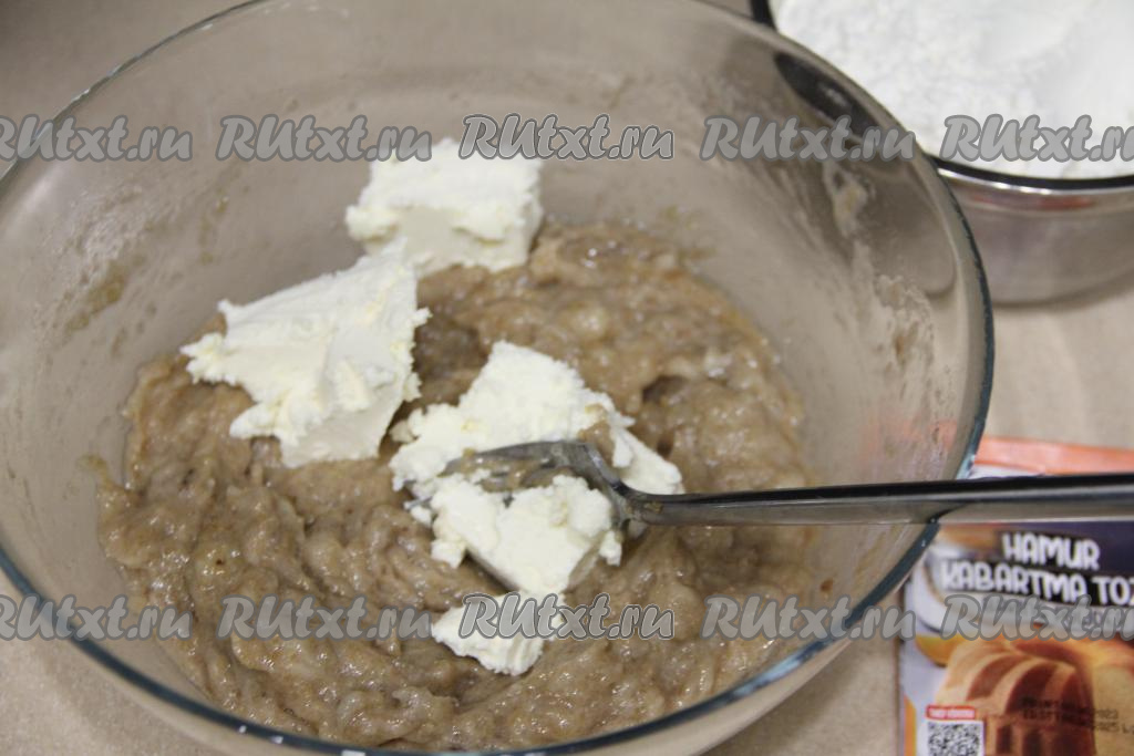 Добавить сливочное масло, размягчившееся до комнатной температуры, размять массу вилкой до однородности.