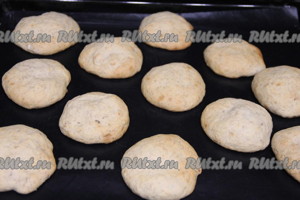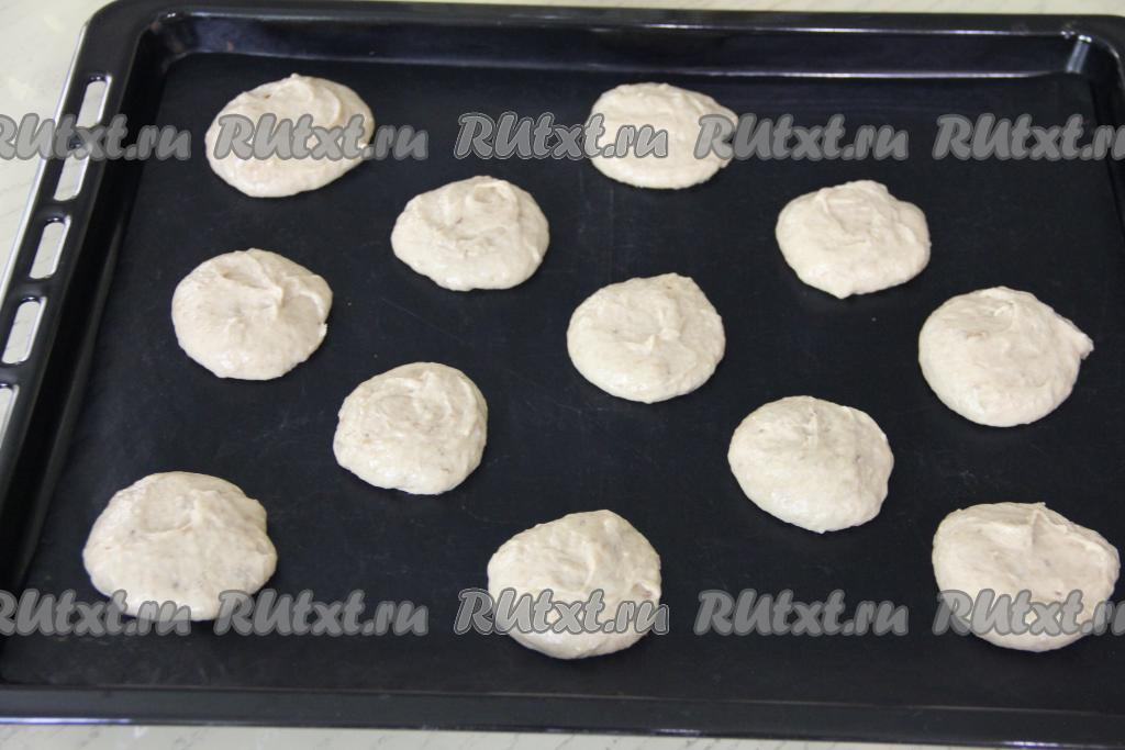 В процессе выпечки банановое печенье увеличивается в размере, поэтому выкладывайте тесто на расстоянии друг от друга.