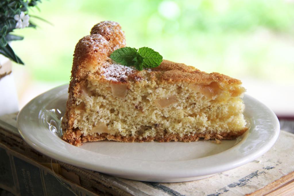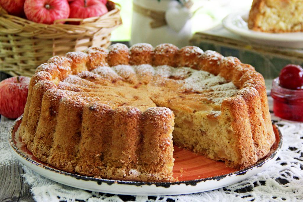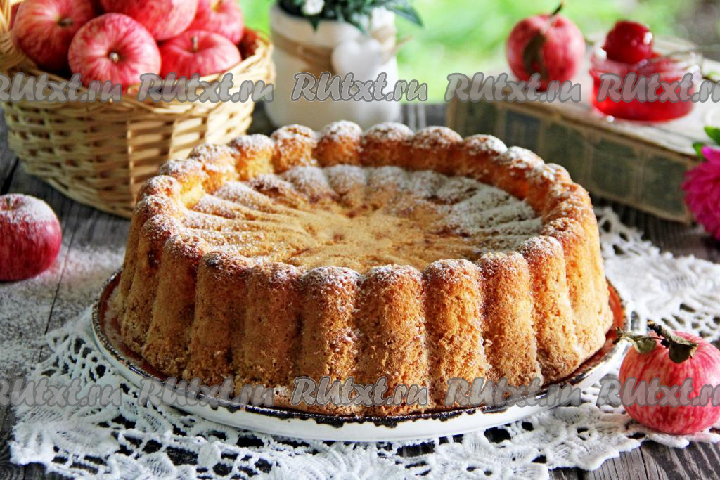 Нарезать воздушную шарлотку на кусочки и подать к столу.