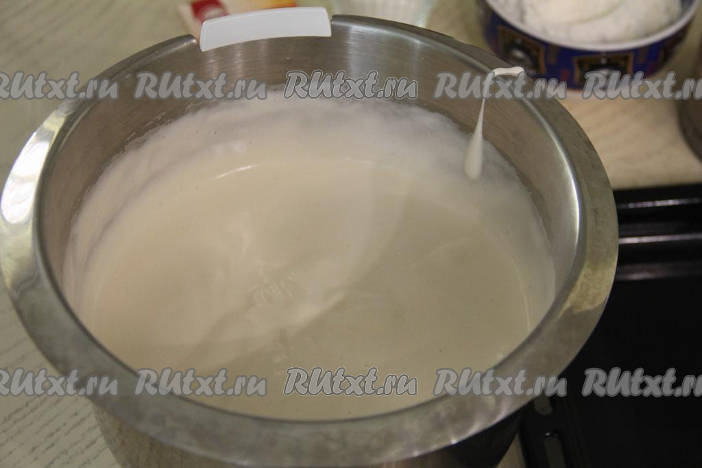 Взбить миксером яйца с сахаром на максимальной скорости в течение 7 минут. Яичная масса в процессе взбивания увеличится в объёме и станет очень воздушной.