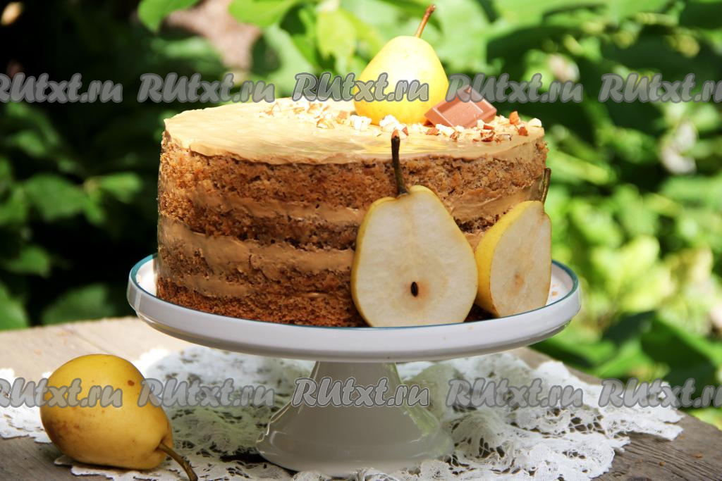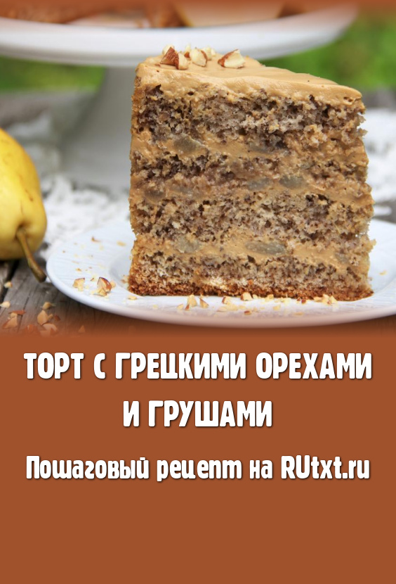 Недавно приготовила бисквитно-ореховый торт с прослойкой из карамелизированных груш. Торт получился очень вкусным, в меру сладким, воздушным и ароматным. Бисквит, испечённый с добавлением измельчённых грецких орехов, выходит высоким, его достаточно просто разрезать на 4 коржа. Крем из сметаны и варёной сгущёнки удачно сочетается с прослойкой из груш и делает вкус торта просто восхитительным. Орехово-грушевый торт отлично выглядит в разрезе. Этот наивкуснейший торт с грецкими орехами и грушами украсит и домашнее чаепитие, и праздничный стол.