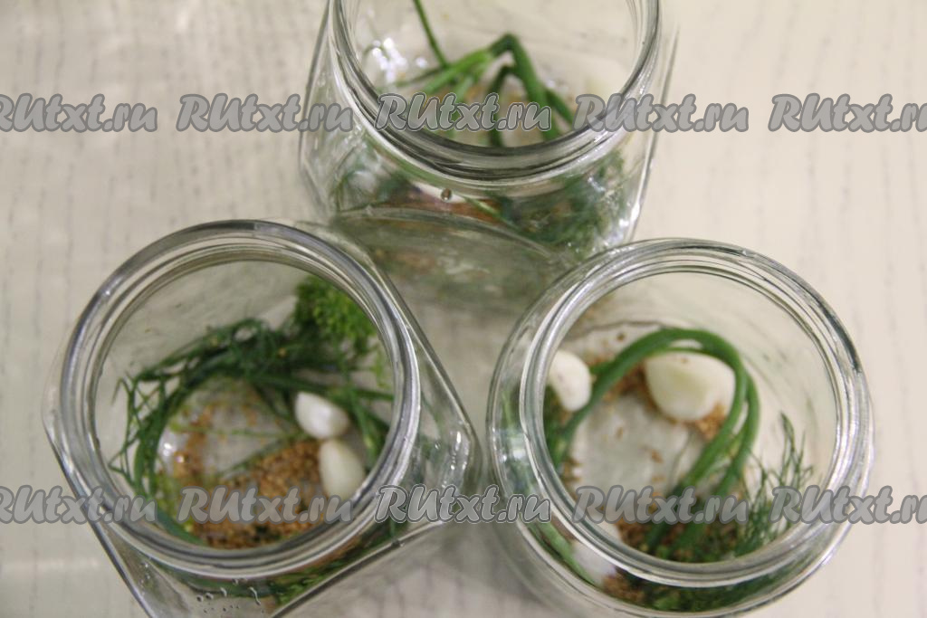 Всыпать в каждую баночку по 1 чайной ложке зёрен горчицы.