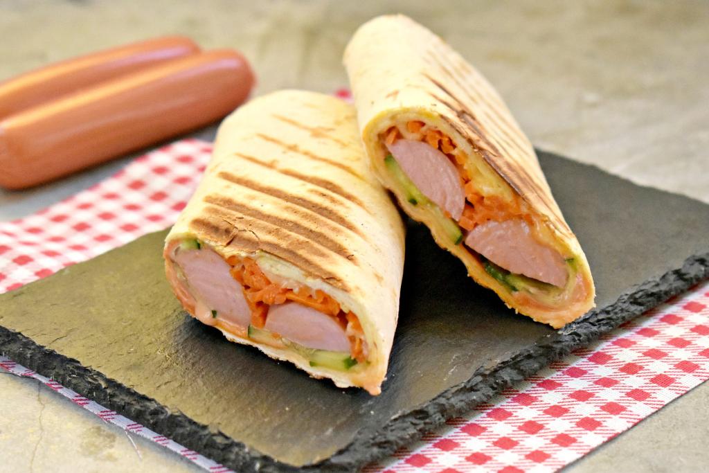 Хот-дог в тортилье получается сочным, сытным и очень вкусным, его можно сразу подать к столу или взять с собой на работу, в дорогу.
