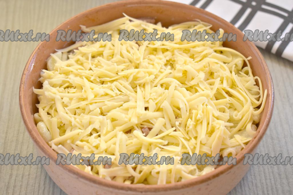 Посыпаем сыром, натёртым на крупной тёрке.