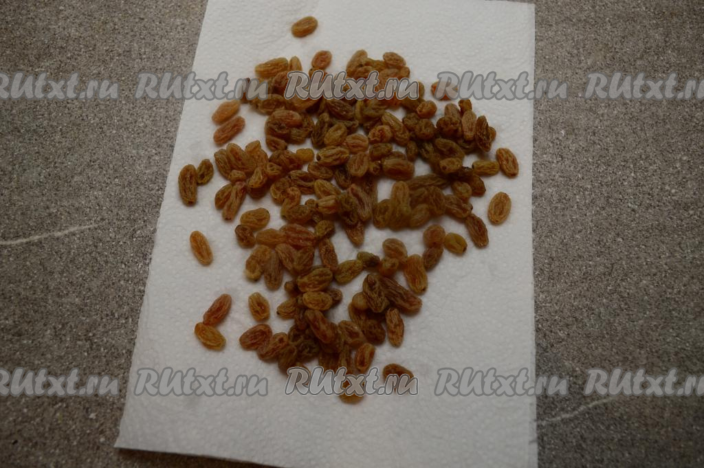 Затем откидываем изюм на сито, лишней воде даём стечь. Выкладываем изюм на бумажное (или тканевое) полотенце и даём обсохнуть.