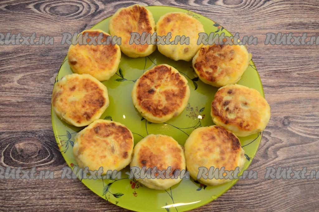 Готовые сырники с тыквой и изюмом выкладываем на плоскую тарелку. Остатки жира убираем бумажными салфетками (или бумажными полотенцами).