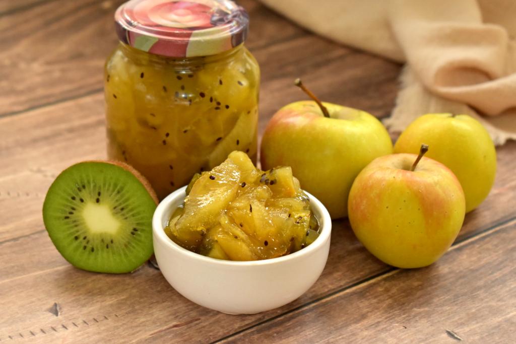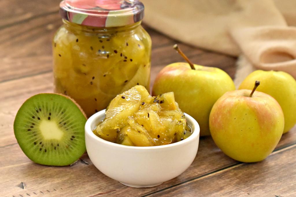 Достаточно густое, вкусное варенье, приготовленное из яблок и киви, станет приятным дополнением к чаю, блинчикам, а также отличной начинкой для различной выпечки.