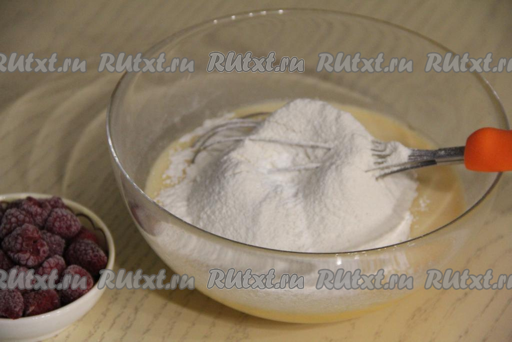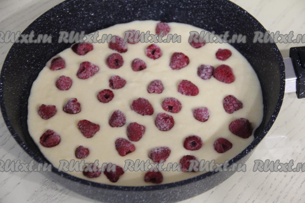 Поверх теста выложить малину.