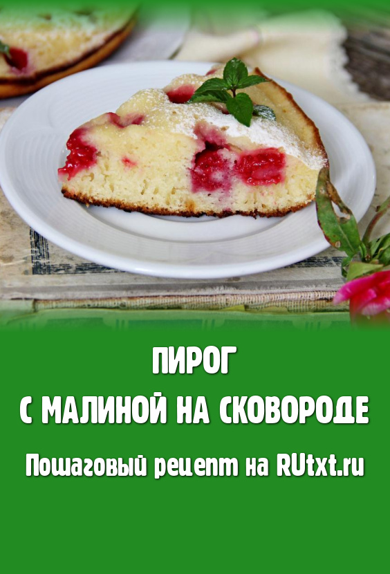 Готовить пирог с малиной 15-20 минут. Готовность проверить, проколов пирог сухой зубочисткой. Если после прокола выпечки зубочистка по-прежнему будет сухой, значит пирог готов, убирайте его с огня. Переложить пирог со сковороды на тарелку, дать немного остыть. Перед подачей, по желанию, выпечку можно присыпать сахарной пудрой.