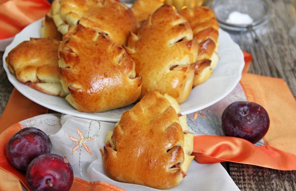 Аппетитные, вкусные, воздушные булочки со сливами, сформированные из дрожжевого теста, можно есть как горячими, так и полностью остывшими.