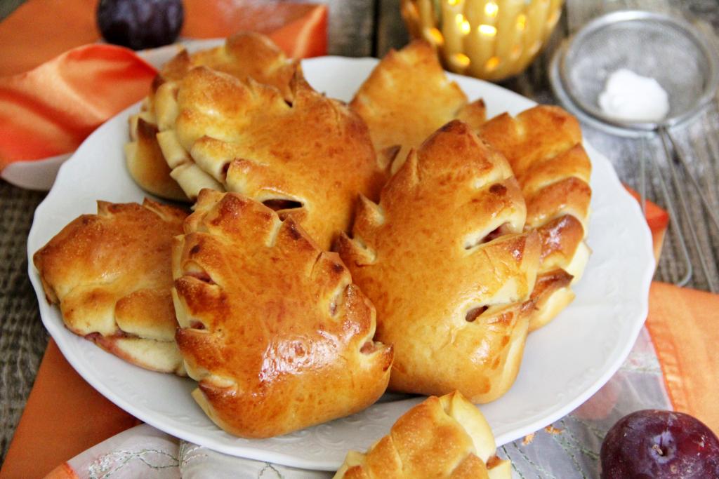 Предлагаю испечь к чаю вкусные, воздушные, красивые булочки из дрожжевого теста с начинкой из слив. Выпечке можно придать любую форму. Я решила сделать булочки в виде осенних листочков. Выпечка получилась ароматной, с мягким мякишем и вкуснейшей сливовой начинкой. Такие булочки несомненно понравятся и взрослым, и детям!