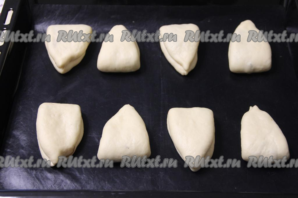 Выложить заготовки на противень, застеленный ковриком (или бумагой) для выпечки, на расстоянии друг от друга. Оставить булочки на расстойку на 25 минут.