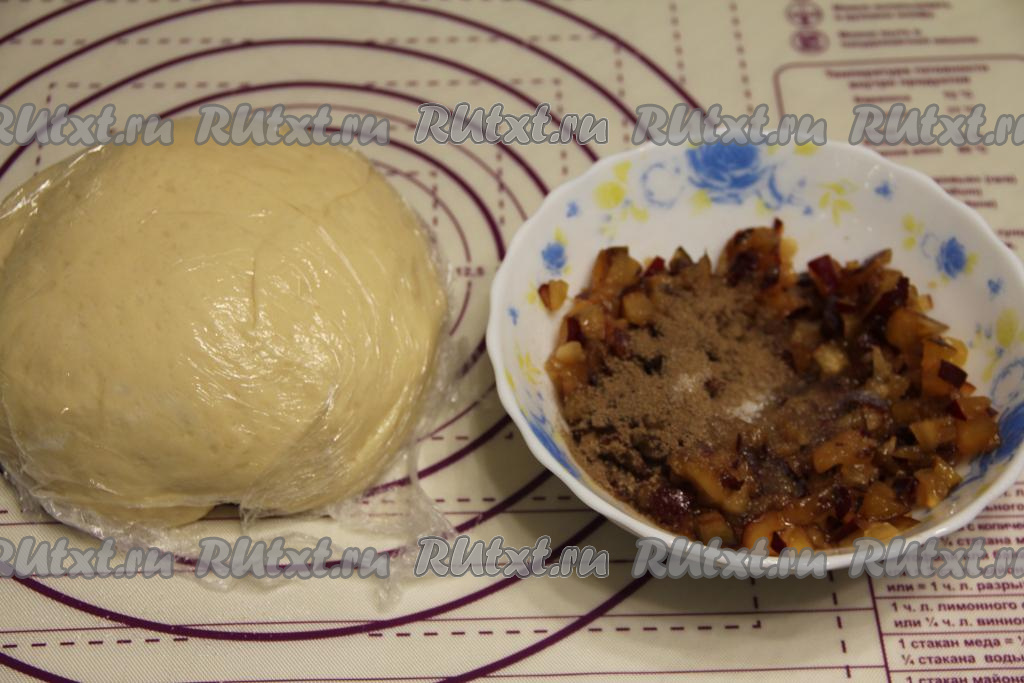 Затем обмять дрожжевое тесто и оставить на столе на 20 минут, накрыв полотенцем. Сливы вымыть, удалить косточки и нарезать на мелкие кусочки. Всыпать к сливам сахар и корицу, перемешать и начинка для булочек готова.