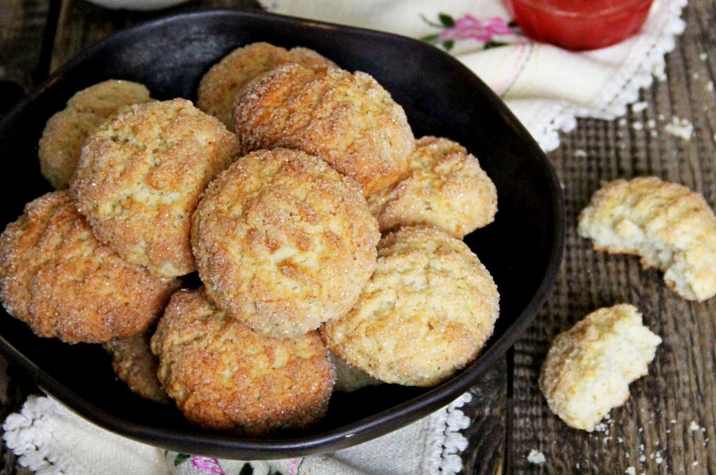Противень с готовой выпечкой достать из духовки. Дать печенюшкам немного остыть, переложить на тарелку и подать к столу. Печенье, замешанное на кефире и сметане, получается очень вкусным, покрытым сахарной корочкой снаружи и мягким внутри, оно станет замечательным дополнением и к чаю, и к кофе.