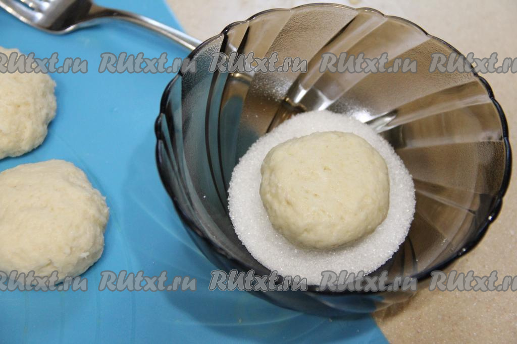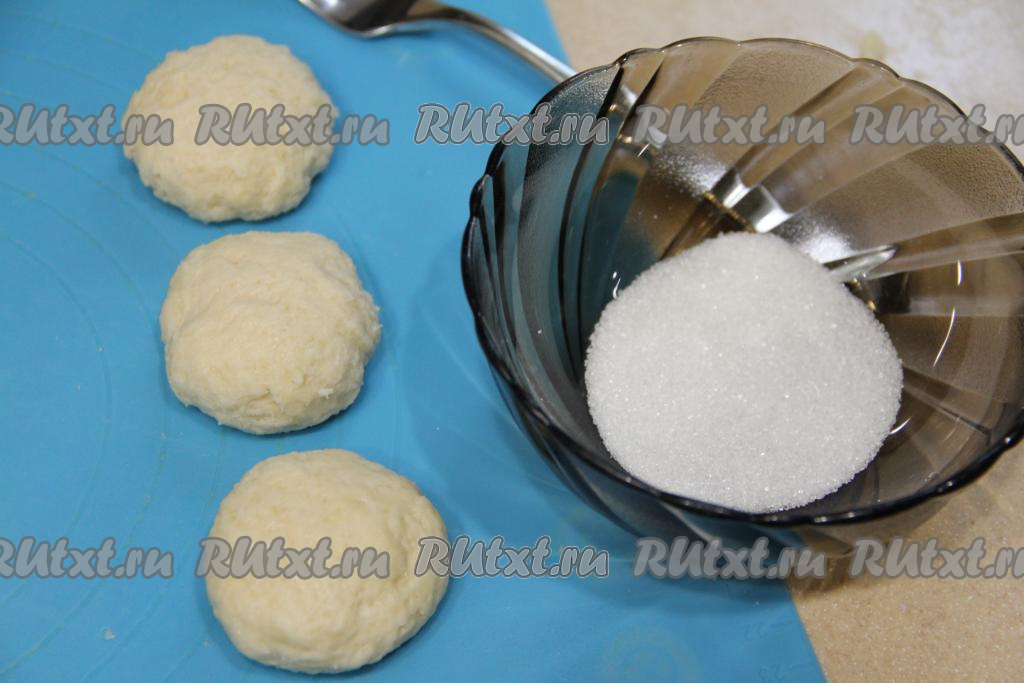 Каждую часть теста скатать в шарик и слегка приплюснуть.