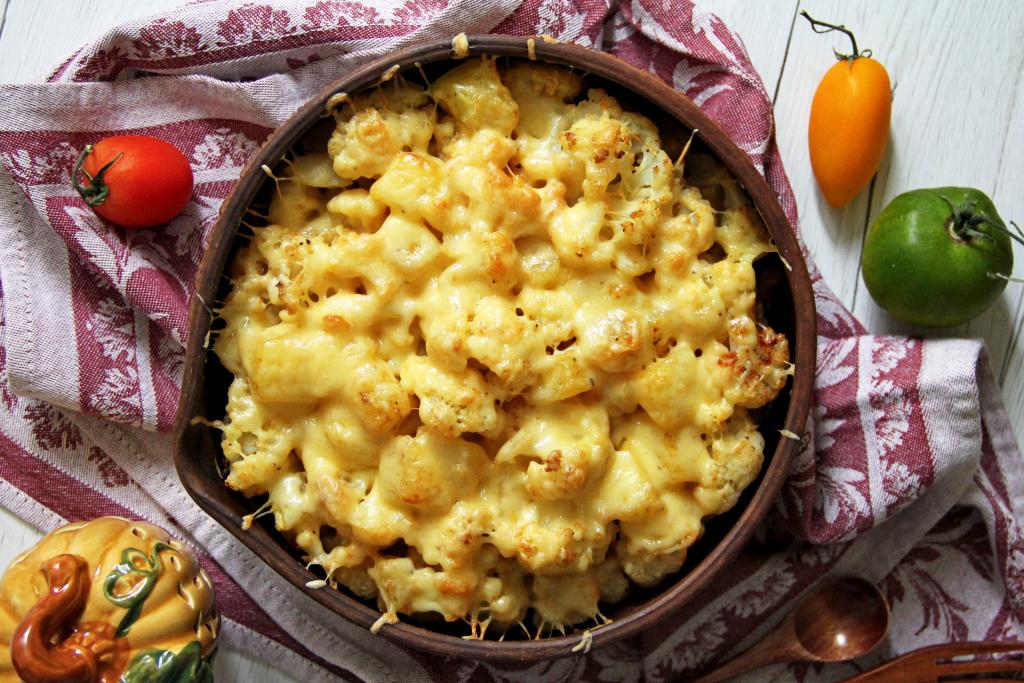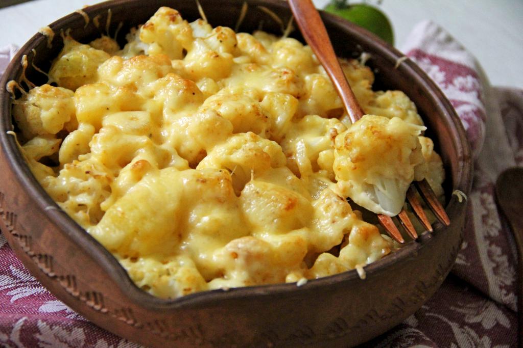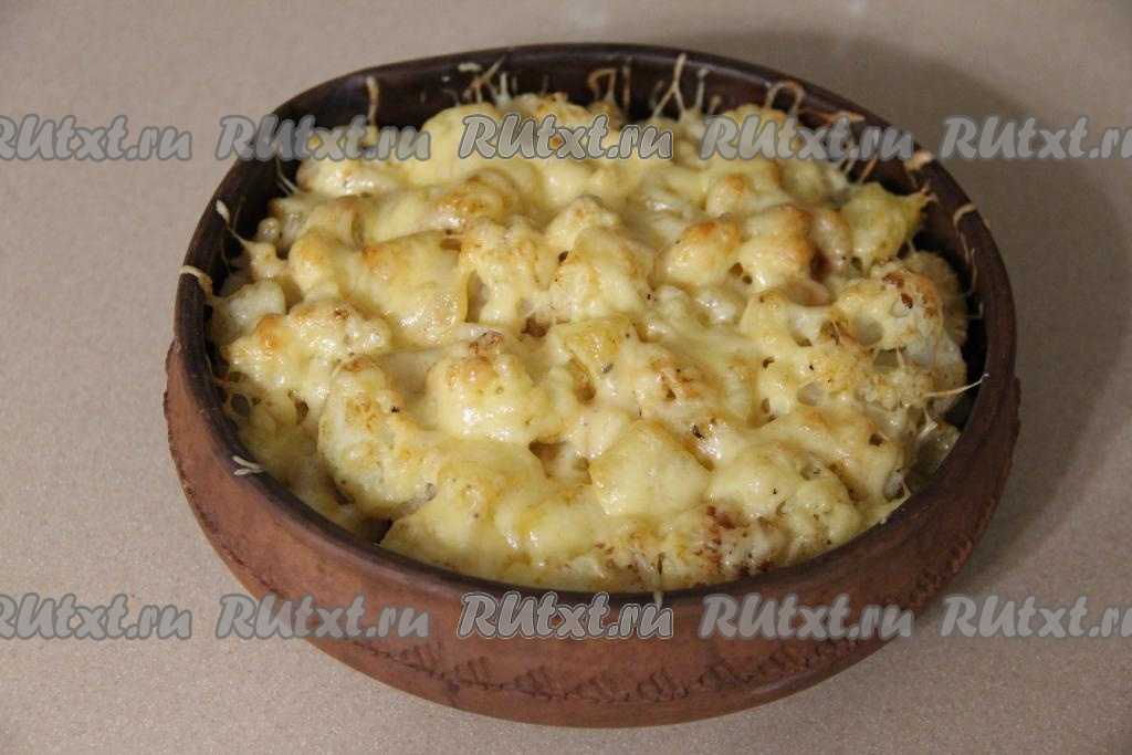 Цветную капусту и кабачки, запечённые под аппетитной сырной корочкой, достать из духовки.